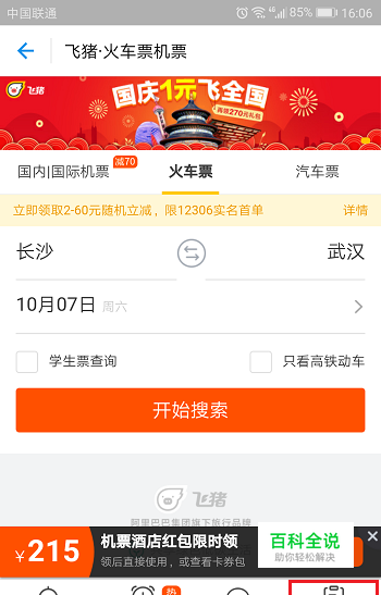第一步登录账号进去之后,在主界面选择火车票机票,然后点击订票,退票,改签,如下图所示:
