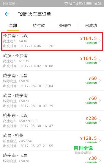 第二步进去之后,可以看到所有的火车票订单,选择我们要改签的,如下图所示: