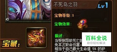涅槃中永生——不死鸟之羽 不死鸟之羽是《TNT》副本玫瑰墓园的产物,有时参加《TNT》活动也可以获得。同样,此宝物获得的几率相当低,是目前《TNT》最稀有的宝物。在任何模式下当T友受到导致死亡的伤害时,将避免本次致命伤害,同时为T友增加一个占自己最大生命值5%的护盾,2回合后消失。一局游戏只触发一次。在对战的最后关头,拼血往往是许多T友必经的苦战。凤凰涅槃,浴火重生,当不死鸟之羽发挥功效的时候,往往就是和对手说再见的时候。谁让咱有凤凰毛护体,百毒不侵呢!