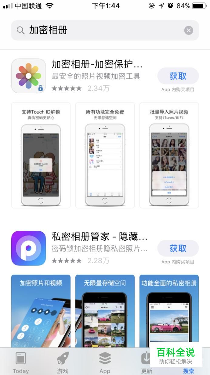 然后在搜索中输入“相册加密”,会出来很多的软件,小编随便选择了一个下载,如图所示。