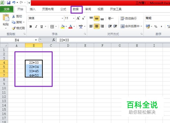 然后我们选中这组数据,并点击工具栏中的数据;