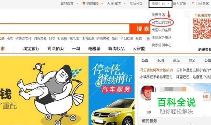 首先在电脑上打开淘宝,点击卖家中心进入,再选择已经卖出的宝贝。