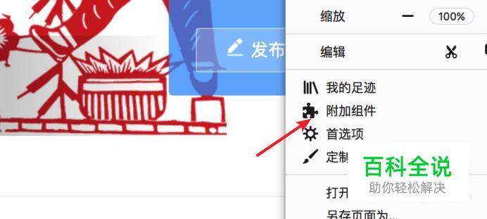 点击后弹出下拉菜单,点击菜单上的‘附加组件’