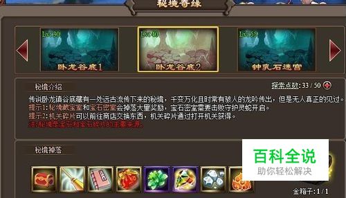 接下来做40级和30级的秘境,每个分配17点(即2、5、5、5),刚好打开下一个密室就行;40级和50级的秘境只需做一次,不必额外购买(因为没什么好东西,性价比不高)。