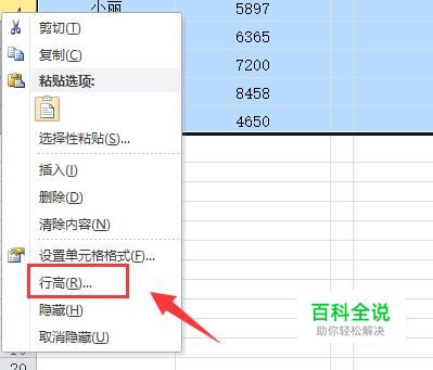 选中若干行,鼠标右击,在弹出来的选项中选择"行高",就可以调整行高。有时候,我们需要将行高调大一点,这样表格才能看得清楚。