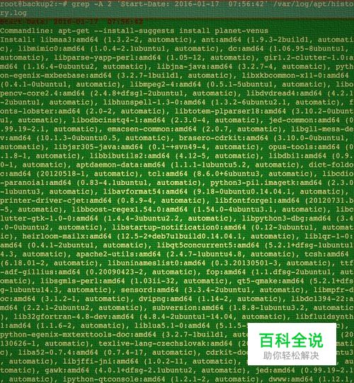 如何从命令行回滚apt-get升级? 运行以下命令找到相关的历史记录: # grep -A 2 'Start-Date: 2016-01-17 07:56:42' /var/log/apt/history.log 示例输出