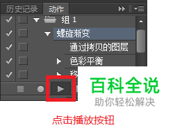 好了铺垫做好之后点你想要重复动作的动作开始图层,这里我们点一下螺旋渐变这一图层