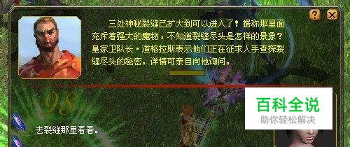 翻阅《亚特快报》第⑤期,你发现面对神秘裂缝扩大的局面,不仅神界开始插手,人族自己也有所行动。 皇家卫队长正在征求人手探查裂缝尽头的秘密。尽管快报上说裂缝内充斥着强大的魔物,你还是无法坐视旁观,决定去找皇家卫队长问个清楚。