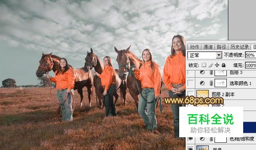 把当前色相/饱和度调整图层复制一层,不透明度改为:50%,效果如下图。