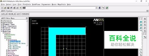 在上一篇经验【ansys如何在平面栅格作图】中,已进行定义单元类型属性和创建了几何体。接下来要进行受力分析。然后再utility menu--workplane--display working plane,取消显示平面栅格。
