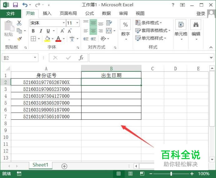 输入参数之后按下回车键,我们就得到了提取的生日日期,如图所示: