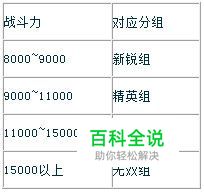 要参加天位之战,首先要单人进入天位之战准备区,天位之战准备区根据战斗力分组,如下