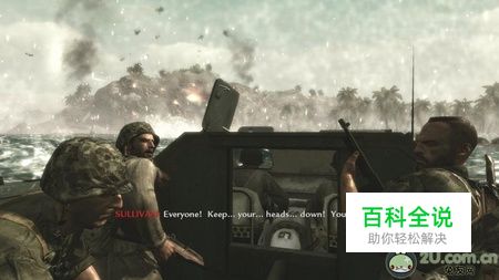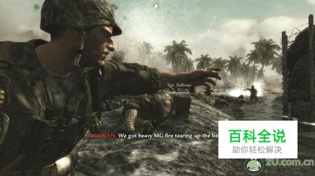 …沿路跟着队友往壕沟外面走,这时会看到壕沟外面有狙击手在往树上爬,瞄准,搞定他。在你踏进草丛的时候,一共会有两拨敌人从草丛里冒出来,他们用刺刀,所以速度很快,看到他们后一定要立刻后退并开枪。继续前进,在有一辆卡车的地方和敌人展开枪战。这里不要和敌人正面打,在车的正前方下坡处会冲出三名用刀的日本兵,搞定他们,并走进他们冲出来的地方,从那里绕到敌人暗堡的下面,搞定暗堡外面的敌人,再进入暗堡,杀掉暗堡里的敌人,搞定所有敌人后再次回到暗堡下方,会从一个关着的铁门那冲出一个日本将军,杀掉他,