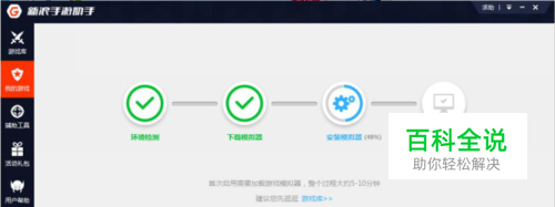 2. 安装模拟器:打开软件,第一次启动工具会自行安装运行手游的模拟环境,这个过程是全自动的,无需其它操作,耐心等待;