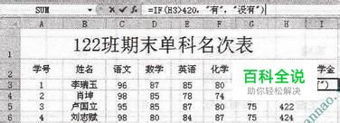 步骤2:在编辑栏中输入“=IF(H3>420”,“(有)”,“(没有)”,如下图所示。