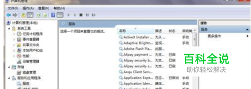 在弹出来的计算机管理界面中,找到服务和应用程序,然后点击服务项;
