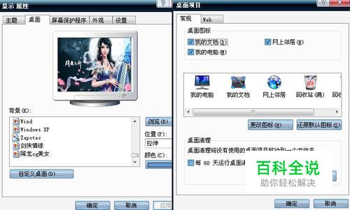 2、电脑的桌面空白处--右键--属性--桌面--自定义桌面、你点了自定义桌面后,按一下上的I键,然后确定,再点应用。