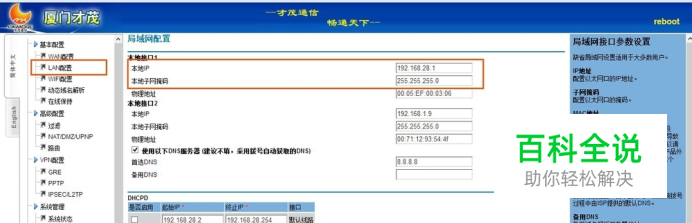 现在绝大部分品牌或非品牌有线或无线4G路由器,其LAN口地址一般使用192.168.1.1或192.168.0.1网段,而使用此默认地址,既不安全,有时也不实用,比如局域网中电脑数过高,超过255台,则此C类地址就不适合,那么我们就需要将路由器LAN口地址修改为其他私网地址,下面笔者就此问题,教你如何修改路由器LAN口IP地址的方法。 1、将本机电脑IP地址设置为自动获取。 2、打开IE浏览器,在地址栏中输入192.168.1.1或192.168.0.1,在弹出的用户名和密码框中输入默认值,即admin/admin。 3、进入路由器设置界面后,点击左侧菜单栏网络参数》LAN口设置,如下图所示: 4、在右侧的LAN口设置界面,将IP地址改为自己所需的地址段,如192.168.28.1,子网掩码255.255.0.0 5、修改完成后,点击保存,一般此时路由器提示是否重启,点击“是”即可。 6、以上5步只是针对路由器设置,如果此时再想登陆到路由器WEB界面上去,使用192.168.1.1是无法登陆的,而应将本地电脑的IP地址段设置为192.168.28.1段才可以。