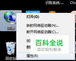 在桌面的“网络”上右键单击,在弹出的菜单里选择“属性”。