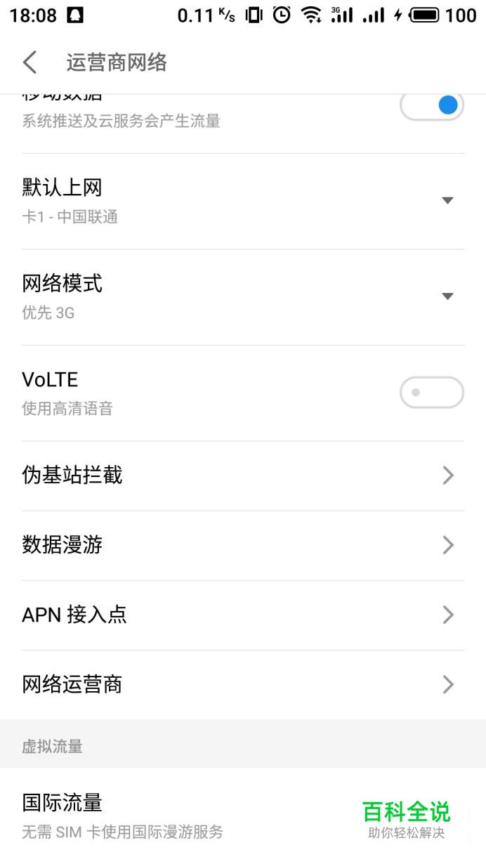 进入手机系统设置界面,在选项中点击“运营商网络”