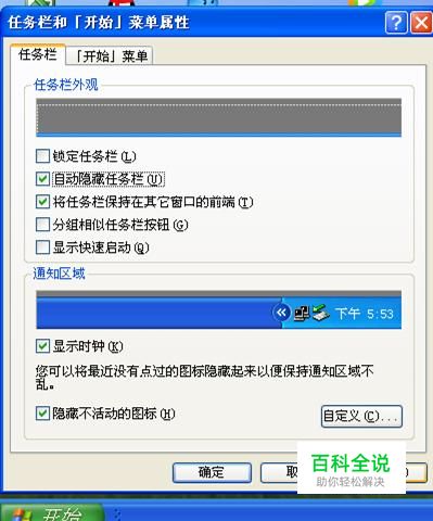 在出现的界面里的“任务栏”选项卡下,看看“自动隐藏任务栏”是否被勾选了。