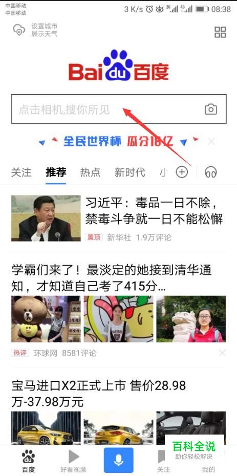 打开后,我们可以看到手机百度的首页,在搜索框内输入想要查找的内容;