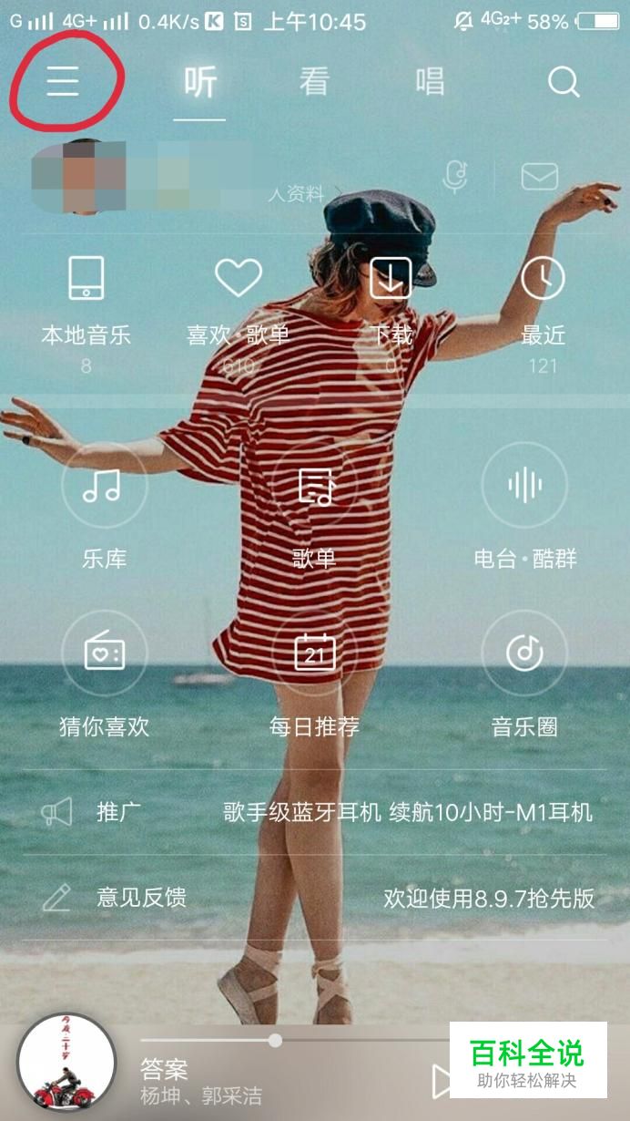 在主页里面点击左上角的按钮,进入设置页面。可以在里面找到蝰音效果。