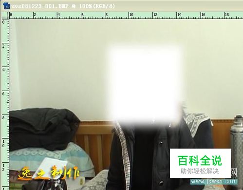 、做遮罩图,用ps打开这个图片,用矩形选框工具选中人物面部,右键羽化为10,用白色填充