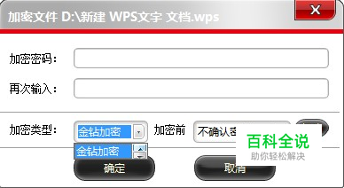 在弹出的文件加密窗口中输入文件加密密码,选择合适的文件加密类型(文件加密类型可分金钻和移动加密),然后点击确定按钮就可以给隐私文件加密了。