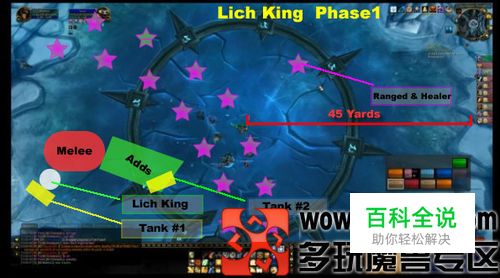 王会周期性(30秒) 给非坦克队员加一个一个Debuff“骨疽瘟疫”,这个效果如果消失,给巫妖王的BUFF就是dk天谴打击的增强版(暗影伤害),可以无限叠加 (成就相关) ,这个Debuff需要中的人在5秒内跑向副坦坦的那只大Add并驱散该Debuff (如果你离大Add最近,这个Debuff会跳到这只大怪上在5秒后给他10W*层数的伤害),技能说明:在目标身上寄生致命瘟疫,每5秒造成100000点暗影伤害,持续15秒。如果目标在瘟疫持续期间死亡或效果结束,这个效果会叠加一次并传染到附近一个目标身上。如果这个效果被驱散,它将会失去一次叠加效果并且传染到附近一个目标身上。无论该效果何时传染,巫妖王的力量会提高。