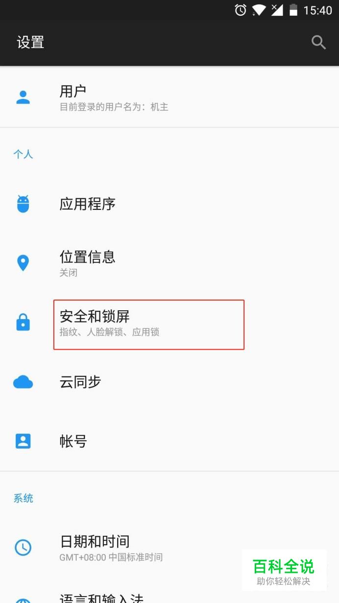 找到“安全和指纹”并点击进入