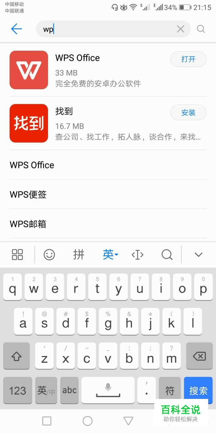 首先点击进入应用市场,搜索wps(使用辅助工具,操作更容易哟)