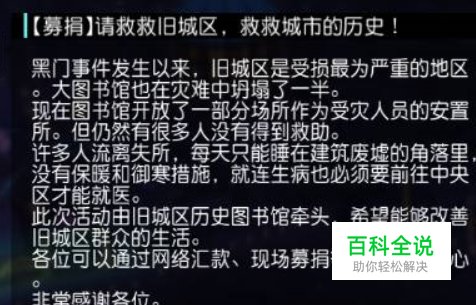 第一步:1、好感到20,手帐更新;2、准备好20w金币,开发一次旧城区;3、触发传闻募捐,点击得到讯息;4、巡查旧城区,触发剧情选现在就捐