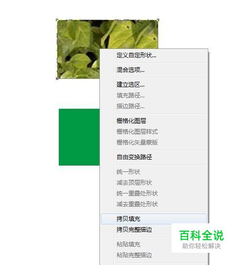 首先保持当前形状工具,在有图案的形状上右键单击,选择拷贝填充