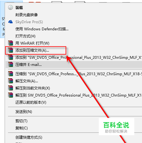 接下来,我们在电脑上找到我们要分割的文件,然后鼠标右击该文件,弹出一个菜单选择“添加到压缩文件”。
