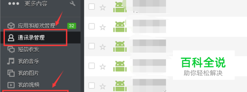 备份完后。我们点步骤1所示的“通讯录管理”里将通讯录全部删除, 也可以不删除,为了不和后面导入的混淆,可以删除。全选-->删除,现在手机通讯录里已经无联系人,我们要导入新联系人。