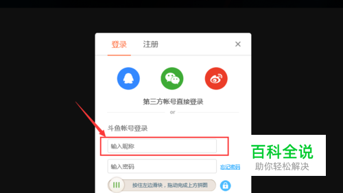 我们可以清楚地看到,登陆斗鱼账号必须使用昵称