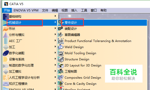 通过菜单路径:开始>机械设计>零件设计,进行新建零件,这也是入门级要掌握的模块。