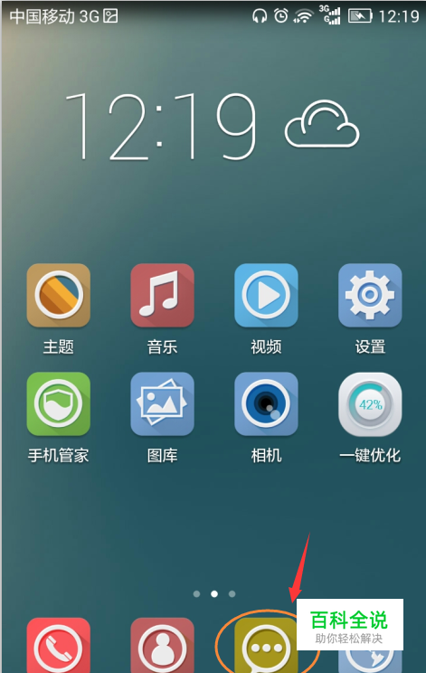 手机打开,解锁后,进入待机界面,点击“短信”符号.