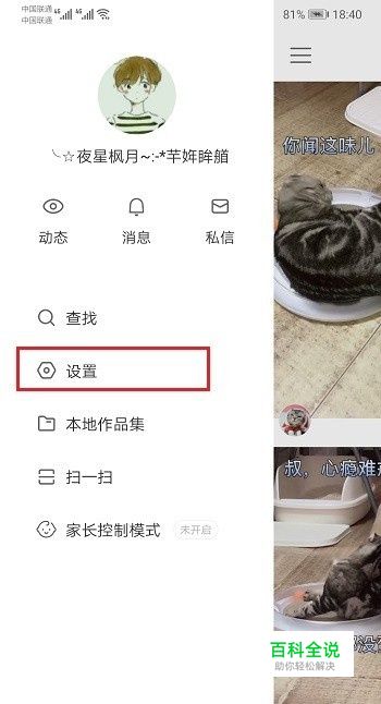 第一步在我们的手机中打开快手侧边栏,点击设置,如下图所示: