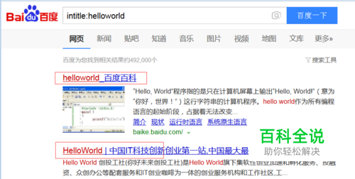 intitle——把搜索范围限定在网页标题中 使用方法: intitle:查询内容 例如 百度输入intitle:helloworld搜索