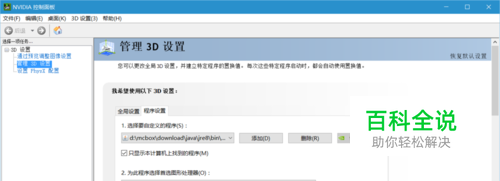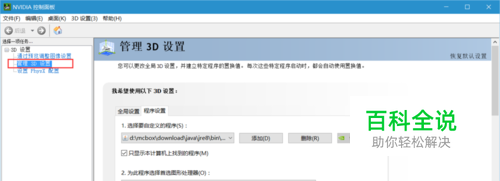 找到左侧管理3D设置,选择右边的程序设置