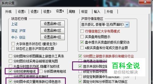 “分时均线使用粗线”,“分时图中成交量用涨跌红绿色显示”,“显示未回补跳空缺口”三个打上勾,其它的勾都是系统默认的。当然这只是我的习惯,如果你不喜欢可以跳过。我只能说这样设置后,看图很醒目。