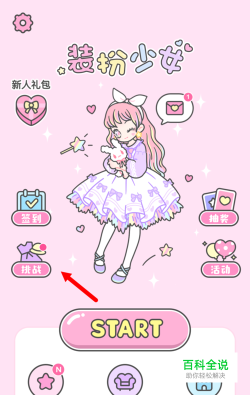 打开手机上的装扮少女,并进入到个人的主页中,并点击界面上的【挑战】按钮。