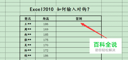 Excel2010 如何输入对钩(√)?