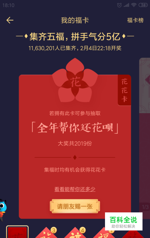 首先可以使用使用扫扫的模式获得花花卡,把扫扫对准福字然后就有机会获得花花卡。
