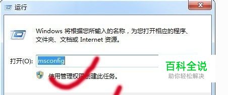在弹出的运行对话窗口,输入MSCOFIG,点击确认