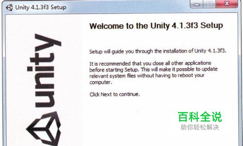 下载完成后,双击下载的exe可执行文件,会弹出unity3d程序可执行安装窗口。点击Next,会弹出许可协议窗口,选择I Agree继续软件的安装。