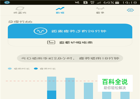 选择数据部分,你可以看到你今日使用手机的情况、距离疲劳使用的时间还有平均看手机的次数及趋势。
