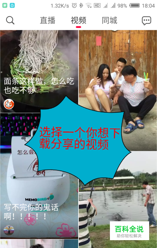 打开软件,选择一个你想下载分享的视频。